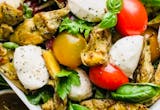 Fresh grilled chicken, spinach, artichokes, mushrooms and tomatoes topped with mozzarella cheese, served with tomato sauce.